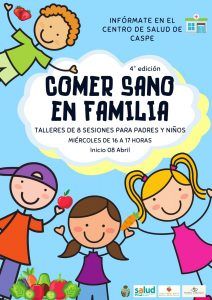 El área de Promoción de la Salud del Ayuntamiento de Caspe en colaboración con el Centro de Salud de Caspe organiza la 4ª edición de “Comer Sano en Familia”. Desde el Centro de Salud, con la asistencia de las nutricionistas del municipio Marina Gargallo y Laura Gandul, se ofrece este programa de salud en formato grupal, cuyo objetivo es mejorar la alimentación infantil y promover la actividad física tanto del niño como de su entorno familiar.