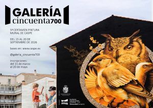 El Ayuntamiento de Caspe organiza la 5ª edición del concurso de arte urbano “Galería Cincuenta 700” con la colaboración de la Universidad de Zaragoza (UNIZAR). El concurso se celebrará del 15 al 20 de septiembre y el plazo de inscripción comienza a las 8:00 horas del 11 de marzo y finaliza a las 14:00 horas del 20 de mayo de 2025.