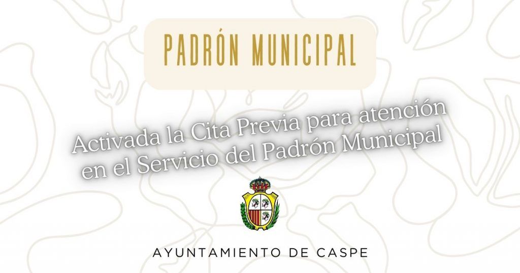 El Ayuntamiento de Caspe informa a la ciudadanía de que, con el objetivo de mejorar la organización y agilizar la atención al público, se ha activado el sistema de Cita Previa para la atención en el Servicio de Padrón Municipal.
