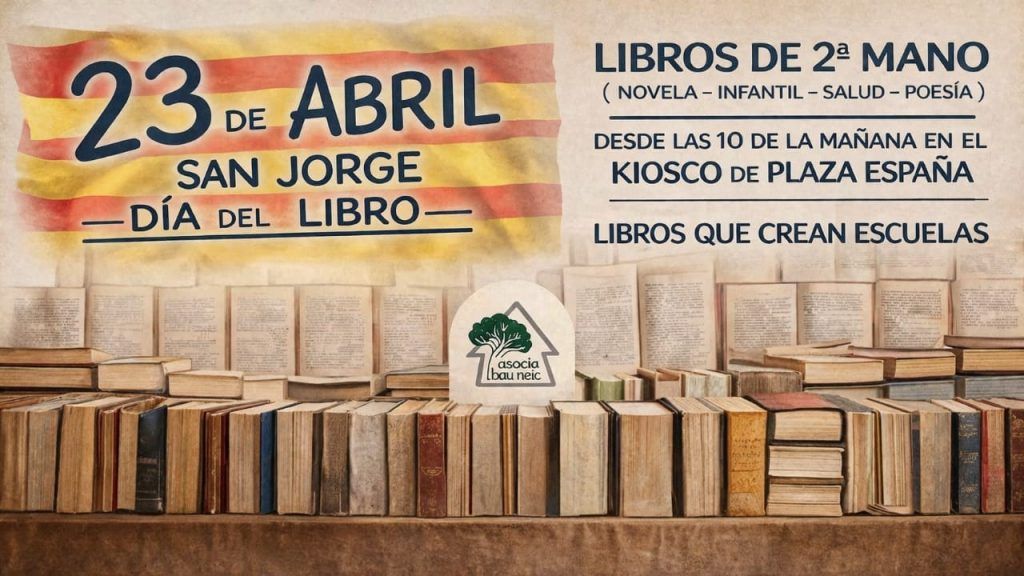 - Día de San Jorge. Día del libro. Libros de 2ª mano. El jueves 23 de abril a las 10:00 horas en el kiosco de la plaza de España libros que crean escuelas (novela, infantil, salud, poesía) organiza la Asociación Adouna Bou Neck.