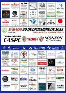 - Fútbol C.D. Caspe. El sábado 20 de diciembre a las 17:30 horas en el Campo Municipal de Fútbol Rosales. C.D. Caspe – Monzón.