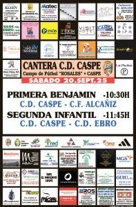 - Fútbol Cantera CD.Caspe. Sábado 20 de septiembre, a partir de las 10:30 horas, en el Campo de Fútbol “Rosales”.