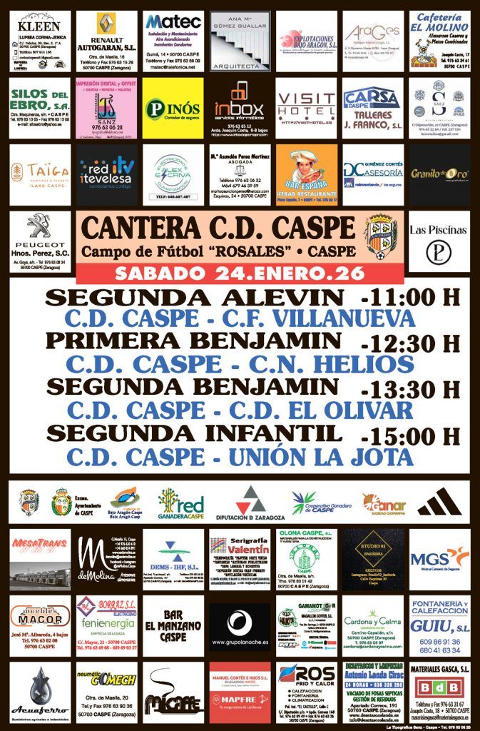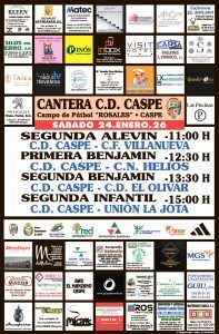 - Fútbol Cantera C.D. Caspe. El sábado 24 de enero en el Campo de Fútbol Rosales: