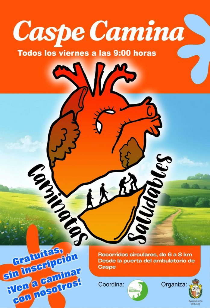- Caspe Camina. El viernes 24 de abril a las 9:30 horas se celebra la actividad “Caminatas Saludables” organizadas por el Ayuntamiento de Caspe y coordinadas por el Club de Montaña Zalagarda. Todos los viernes con salida desde la puerta del Centro de Salud de Caspe con recorridos circulares de 6 a 8 km. La actividad es gratuita, sin inscripción. ¡Anímate y ves a caminar!