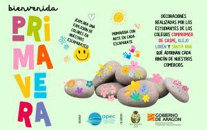 - APEC-Bienvenida Primavera. ¡Explora una exposición de colores en nuestros escaparates! Primavera con arte en cada escaparate. Decoraciones realizadas por los estudiantes de los colegios Compromiso de Caspe, Alejo Lorén y Santa Ana adornan los comercios de Caspe.