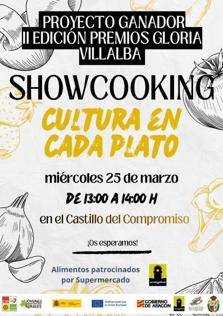 - Showcooking “Cultura en cada plato”: un viaje por el mundo a través de la gastronomía. El miércoles 25 de marzo el alumnado del Colegio Santa Ana de Caspe nos presenta el proyecto educativo “Cultura en cada plato”, una iniciativa que nace enmarcada en la II edición de los premios Gloria Villalba, demostrando que, a través de la comida, también se puede aprender, compartir y construir comunidad. El evento se celebra de 13:00 a 14:00 hora en el Salón del Castillo del Compromiso.