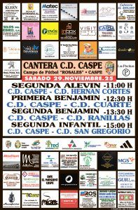 • Fútbol Cantera CD.Caspe. Sábado 29 de noviembre, a partir de las 11:00 horas, en el Campo de Fútbol “Rosales”.
