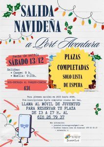 - Salida navideña a Port Aventura (PLAZAS COMPLETADAS, SOLO LISTA DE ESPERA). Organizada por el Área de Juventud de Comarca Bajo Aragón Caspe. El sábado 13 de diciembre.