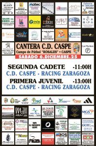 - Fútbol Cantera CD.Caspe. Sábado 6 de diciembre, a partir de las 11:00 horas, en el Campo de Fútbol “Rosales”.