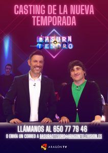 - Casting programa Basura o Tesoro de Aragón TV. Si quieres participar y pasar un buen rato en este programa de Aragón TV apúntate al casting. En el programa una pareja de concursantes debe elegir el objeto más valioso entre 12 diferentes. Llama al 650 77 79 46 o envía un correo a basuratesoro@aragontelevision.es
