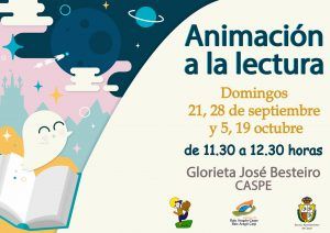 - 2º Ciclo de Animación a la Lectura. El domingo 5 de octubre. Glorieta Besteiro a las 11:30 horas tercer domingo del ciclo Animación a la Lectura organizado por el área de Cultura del Ayuntamiento de Caspe: Cuentos TERRORÍFICOS: ¡Se acerca Halloween! Prepara tu valor y ven a escuchar historias que te pondrán los pelos de punta (de la buena manera). Aprenderemos a transformar nuestros miedos en diversión y a vencerlos con la imaginación. Pronto llegarán los días largos de contar historias a la luz de la chimenea, donde las sombras animan a crear fantasías en torno al miedo. Todavía tenemos mucho trabajo para gestionar los miedos de nuestra infancia. Vamos con calma hacia ese mundo para transformar miedos en fantasías y conseguir vencerlos a través del cuento.