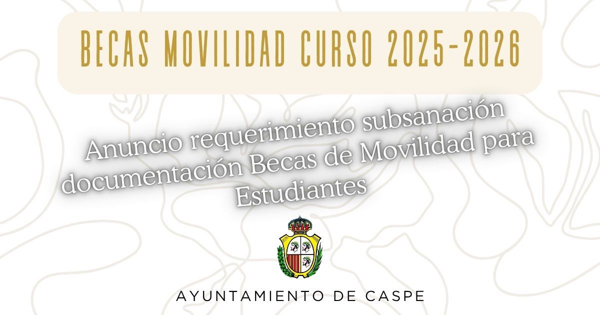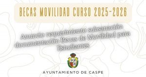 Desde el área de Educación del Ayuntamiento de Caspe se comunica que, vistas las solicitudes de subvención de Becas de Movilidad a estudiantes para el curso académico 2025/2026 destinadas a jóvenes empadronados en el municipio de Caspe, los servicios municipales han comprobado que las solicitudes recogidas en el ANEXO I adolecen de defectos, puesto que, o bien no se ha aportado todavía documentación o, si se ha presentado, omiten o recogen de forma incorrecta o incompleta aspectos que son esenciales para la correcta evaluación y resolución del expediente.