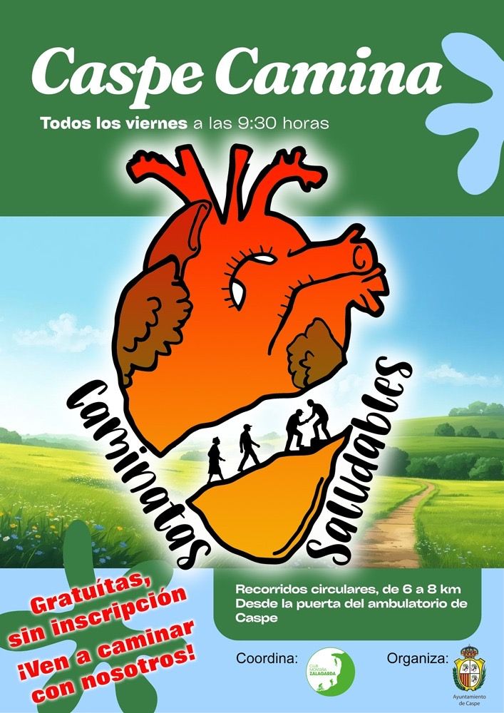A partir del viernes 6 de febrero comienza la actividad “Caspe Camina”.  Una propuesta saludable organizada por el área de Bienestar Social y Deporte del Ayuntamiento de Caspe en coordinación con el Club de Montaña Zalagarda.