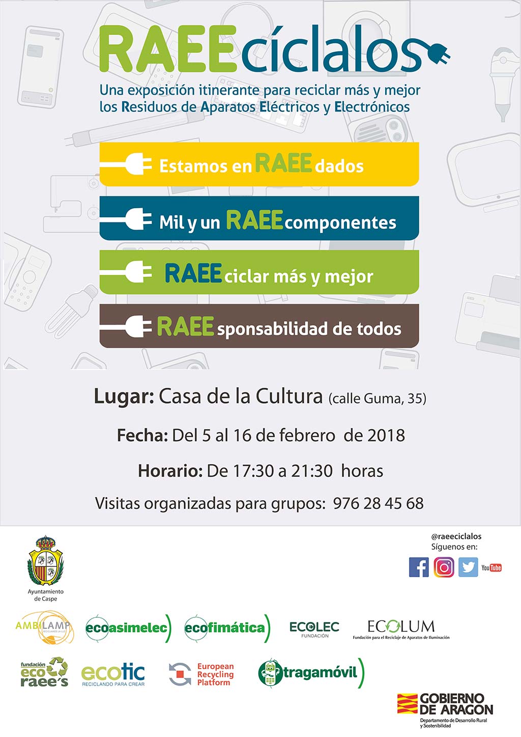 La exposición itinerante RAEEcíclalos es una acción que se enmarca dentro de la campaña promovida por el Gobierno de Aragón para sensibilizar sobre la necesidad de reciclar más y mejor los residuos de aparatos eléctricos y electrónicos y en la que colabora el ayuntamiento de Caspe.