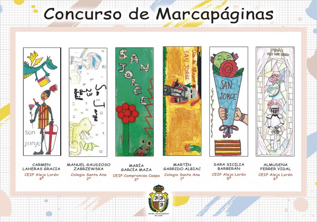 En primer lugar, se hizo entrega de los premios a los escolares de Caspe cuyos trabajos han sido seleccionados en la XI edición del Concurso de Marcapáginas, cuyo tema está relacionado con el “Día de Aragón: San Jorge” una convocatoria muy bien aceptada por el alumnado de primaria.