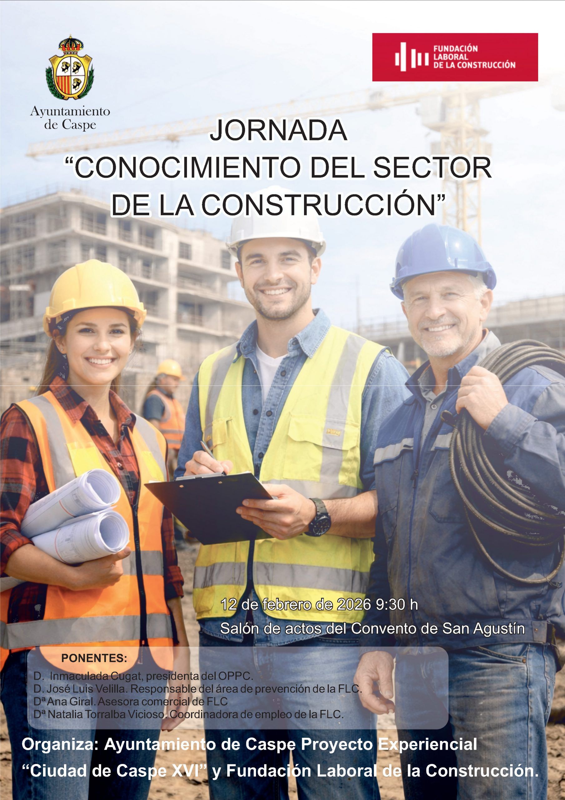 El Ayuntamiento de Caspe en coordinación con el Proyecto Experiencial “Ciudad de Caspe XVI” y “Fundación Laboral de la Construcción” organiza la Jornada Conocimiento del Sector de la Construcción.