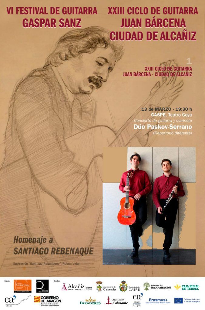 El próximo viernes, 13 de marzo de 2026, a las 19.30 horas, en el Teatro Goya de Caspe podremos disfrutar de un concierto de guitarra y clarinete interpretado por el “Dúo Paskov-Serrano”. La actuación musical, que ha sido programada por el área de Cultura del Ayuntamiento de Caspe y forma parte del “XXIII Ciclo de Guitarra Juan Bárcena-Ciudad de Alcañiz”.