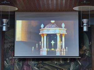 El acto, organizado por las áreas de Patrimonio y Turismo del Ayuntamiento de Caspe, contó con la presencia de la alcaldesa Ana Mª Jarque, que dio la bienvenida al evento, miembros de la corporación municipal, el párroco de Caspe, José Erwin Peña y miembros de la Cofradía del Santísimo Sacramento y de la Vera Cruz a los que puso voz Domingo Albiac, colaborador necesario en esta obra videográfica realizada por Miguel Lorén. Durante la presentación, se destacó la importancia de iniciativas como esta para preservar y difundir el patrimonio religioso que forma parte esencial de la identidad caspolina.