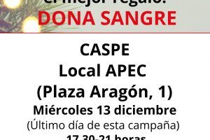 Desde Donantes de Sangre de Zaragoza se ponen en contacto con nosotros para informarnos que hoy, 13 de diciembre, es el último día de campaña. En el Edificio...