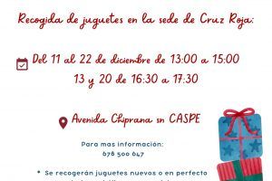 La Cruz Roja de Caspe, como cada año por estas fechas, ha organizado una recogida de juguetes con el objetivo de poder repartir un poquito de ilusión en...