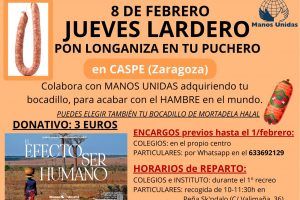 Manos Unidas Caspe te invita a colaborar en su campaña contra el hambre participando en un chocolate solidario que va a celebrar el próximo viernes 9 de...