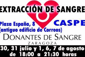Desde Donantes de Sangre de Zaragoza se ponen en contacto con nosotros para informarnos de los días, el lugar y la hora que se desplazará a Caspe una Unidad...