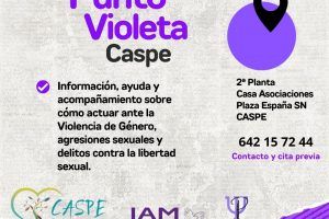 Desde este mes de julio el Ayuntamiento de Caspe mediante la colaboración del Instituto Aragonés de la Mujer -IAM- ha puesto en marcha un Punto Violeta de...