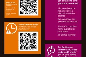 Renfe informa de la distribución en los tableros informativos de las estaciones de vinilos en los que constan los códigos QR, teléfono y App de contacto en la...