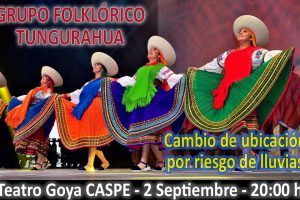 A consecuencia del mal tiempo previsto para mañana, el espectáculo del grupo Folklórico Tungurahua, se va a trasladar de la Plaza España al Teatro Goya de...