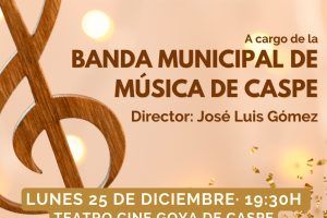 El área de Cultura del Ayuntamiento de Caspe, gestionada por Agustín Moré y Banda Municipal de Música de Caspe ofrecen el Concierto de Navidad. El lunes 25 de...