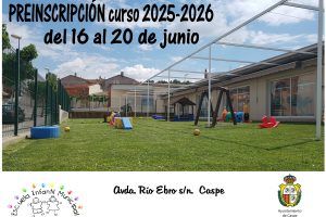 El área de Educación del Ayuntamiento de Caspe abre, desde el 16 al 20 de junio de 2025, el periodo de preinscripción de la Escuela Infantil Municipal para el...