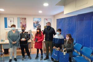 La alcaldesa de Caspe, Pilar Mustieles, acompañada por responsable de Aqualia en el municipio, Jorge Mateo, ha entregado los premios a Jorge García Marco, del...