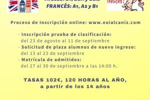 La extensión de Caspe de la Escuela Oficial de Idiomas de Alcañiz ya ha abierto el plazo de inscripción para el curso 2021-2022. La extensión de Caspe ofrece...