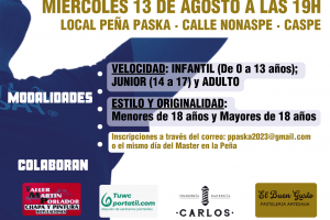 El miércoles 13 de agosto a las 19:00 horas. Local Peña Paska en calle Nonaspe, dentro de la programación de las Fiestas de San Roque 2025, organizado por...