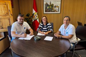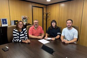 El Ayuntamiento de Caspe, representado por la alcaldesa Ana Mª Jarque, junto al presidente de la Asociación Profesional de Empresarios de Caspe y Comarca...