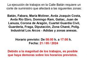 AVISO. Esta semana comienzan las obras del Tramo I de la calle Batán de Caspe, desde el cruce con la avenida Joaquín Costa hasta el Batán número 29, por lo que...