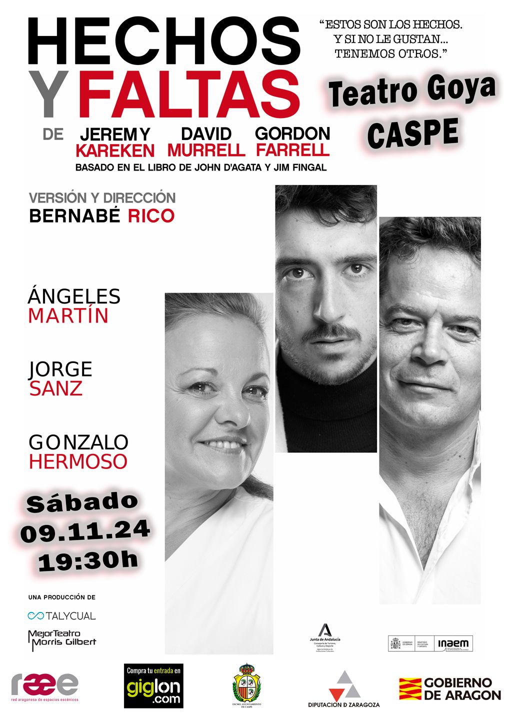 El área de Cultura del Ayuntamiento de Caspe, gestionada por el concejal Agustín Moré, nos ofrece la obra de teatro “Hechos y Faltas”, una excelente comedia, altamente divertida con una puesta en escena notable que nos brinda una colosal reflexión sobre el periodismo que no te puedes perder.