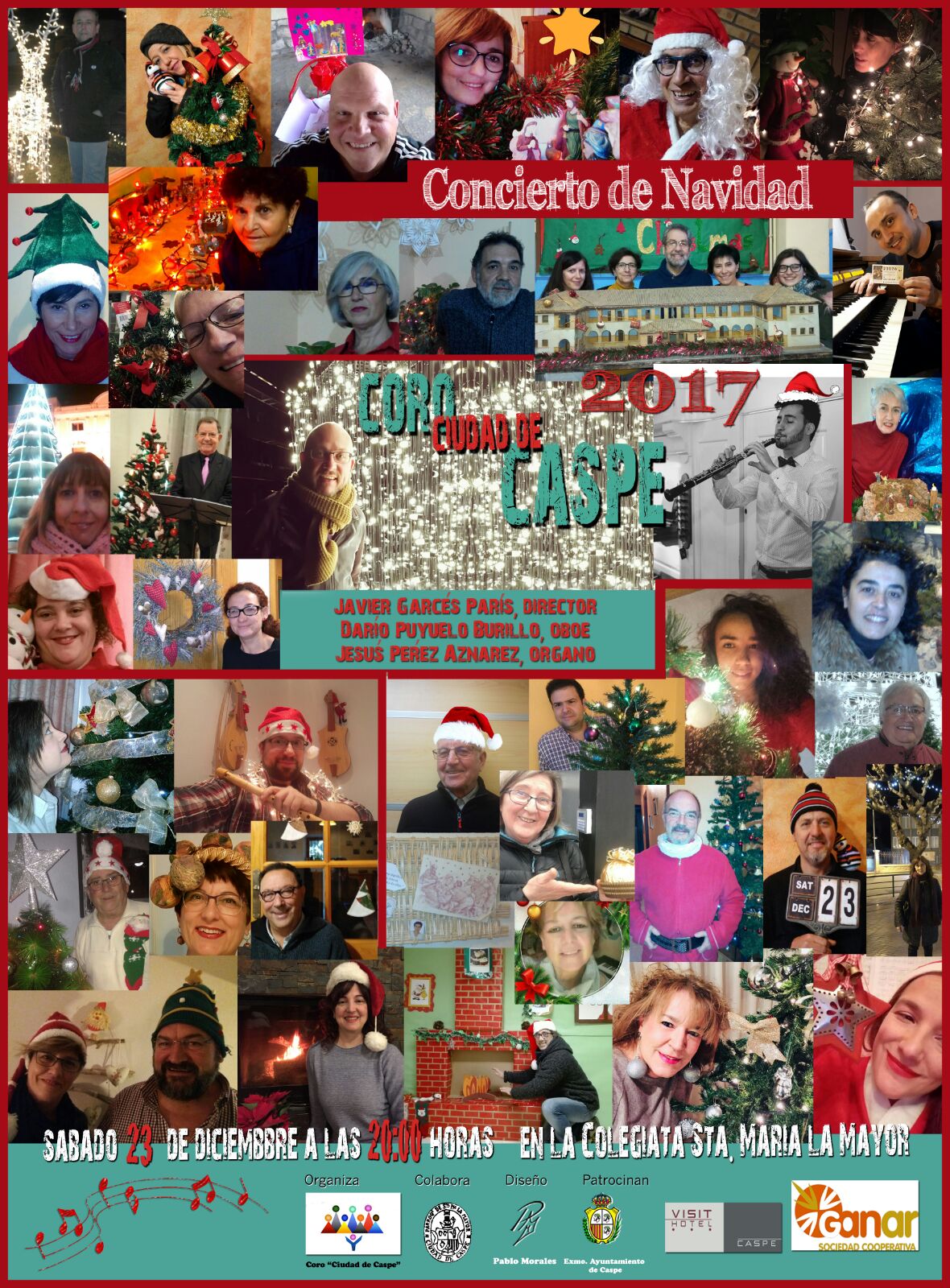 El día 23 de Diciembre a las 20:00 h en la Colegiata de Santa María la Mayor de Caspe. Concierto del Coro Ciudad de Caspe con la dirección de Javier Garcés París, y las interpretaciones de Darío Puyuelo Burillo al Oboe y Jesús Pérez Aznarez al Órgano.