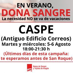 Desde Donantes de Sangre de Zaragoza se ponen en contacto con nosotros para informarnos de los días, el lugar y la hora que se desplazará a Caspe una Unidad Móvil al objeto de proceder a una masiva Extracción de Sangre.