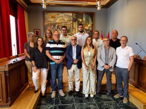 Posteriormente, el consejero de Agricultura, la alcaldesa de Caspe y el director general de Desarrollo Rural se han dirigido al Ayuntamiento, donde han sido recibidos por la Corporación Municipal. La alcaldesa ha invitado al consejero a firmar en el Libro de Honor de la entidad y tras mantener un encuentro con los miembros de la corporación municipal, se ha reunido con la Comunidad de Regantes “Compromiso de Ebro” para tratar diversas cuestiones como la concentración parcelaria y regadíos y para conocer la realidad general de la agricultura en la comarca de Bajo Aragón-Caspe.