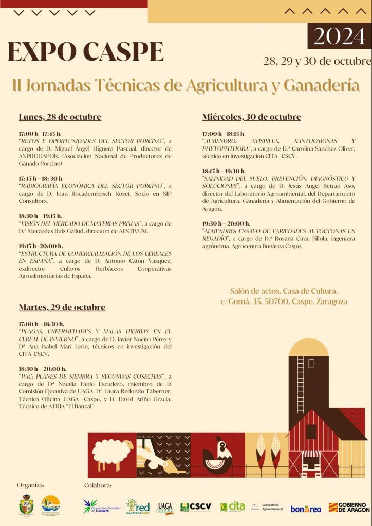 Programa de las II Jornadas Técnicas de Agricultura y Ganadería Expo Caspe 2024: