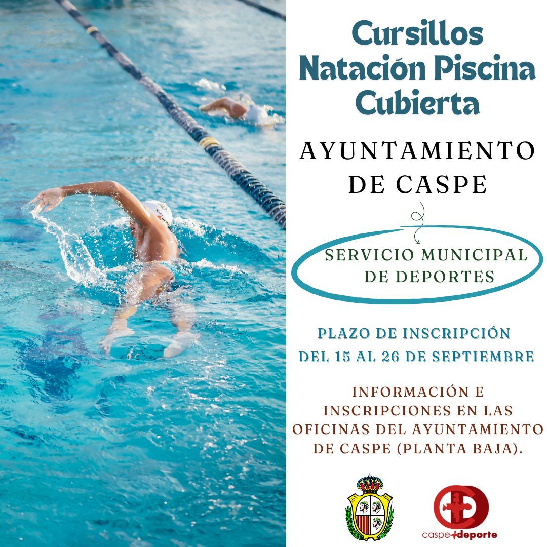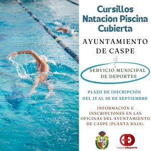 El área de Deportes del Ayuntamiento de Caspe abre el plazo de inscripción para los Cursillos de Natación de Invierno organizados en la Piscina Cubierta.