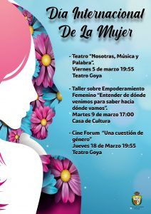 - Martes 9 de marzo: “Taller sobre Empoderamiento Femenino: Entender de dónde venimos para saber hacia dónde vamos”. Impartido por la periodista y formadora María Bosque Senero. 17.00 horas Casa de Cultura.