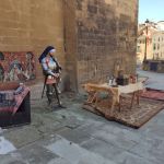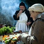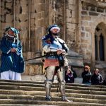 La mañana del domingo ha sido una sucesión de visitas guiadas, talleres y recreación histórica que se ha desplegado alrededor de la Colegiata. Desde la apertura de los espacios militares y cancillerescos ha sido posible conocer usos y costumbres de la época, tales como las armas y armaduras que utilizaban, el vestuario de la nobleza o el atuendo de un rey para la batalla y talleres de escribanía y paleografía bajomedieval en directo.