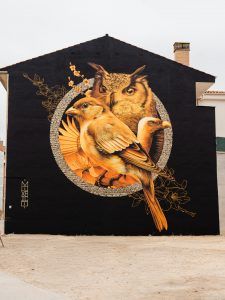 La visita guiada ofrecida el domingo por la Oficina de Turismo ha hecho disfrutar de un agradable paseo a casi un centenar de visitantes que, al finalizar, han tenido la posibilidad de votar por la obra que, bajo su criterio, debía conseguir el premio adicional del público, que ha sido para el mural figurativo inspirado en la fauna local y combinado con tipografía “Los guardianes del horizonte”, seguido por la propuesta “La Guardiana de Caspe” de estilo hiperrealista combinado con elementos del patrimonio local.