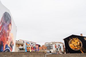 Los cinco murales participantes se caracterizan por su gran tamaño, observados de izquierda a derecha, encontramos las obras y artistas siguientes:
