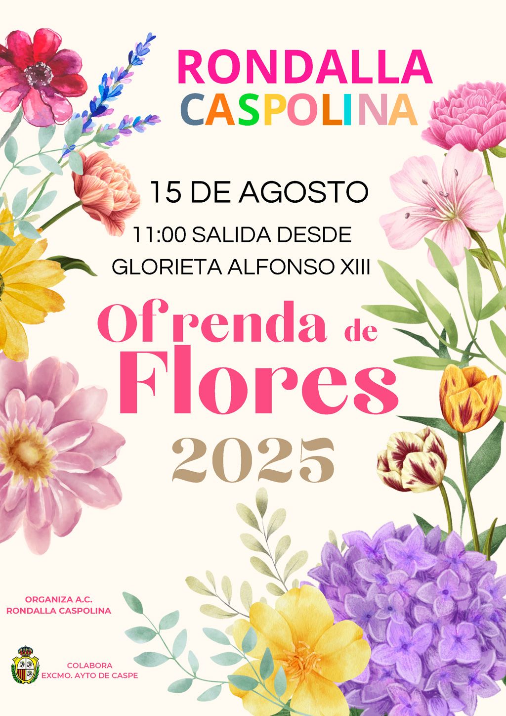 El día 15 de agosto la A. C. Rondalla Caspolina organiza, en colaboración del Ayuntamiento de Caspe, la Ofrenda de Flores de las Fiestas de San Roque 2025.