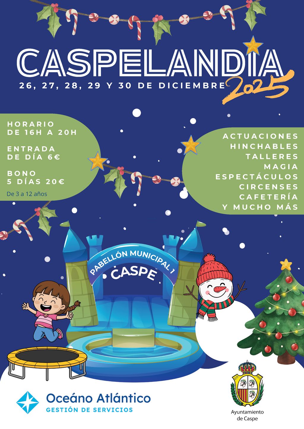 El área de Festejos del Ayuntamiento de Caspe organiza del 26 al 30 de diciembre el Parque Infantil Caspelandia que estará situado en el Pabellón Municipal 1 de Caspe.