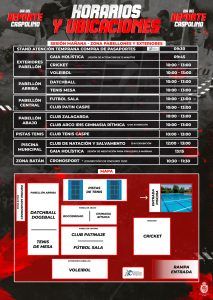 A continuación, facilitamos imágenes que puedes guardar en tu móvil con los horarios y los deportes.
