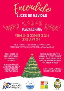 El Área de Festejos del Ayuntamiento de Caspe organiza el próximo viernes 5 de diciembre en la plaza de España el acto de “Encendido de Luces de Navidad” de nuestra Ciudad.